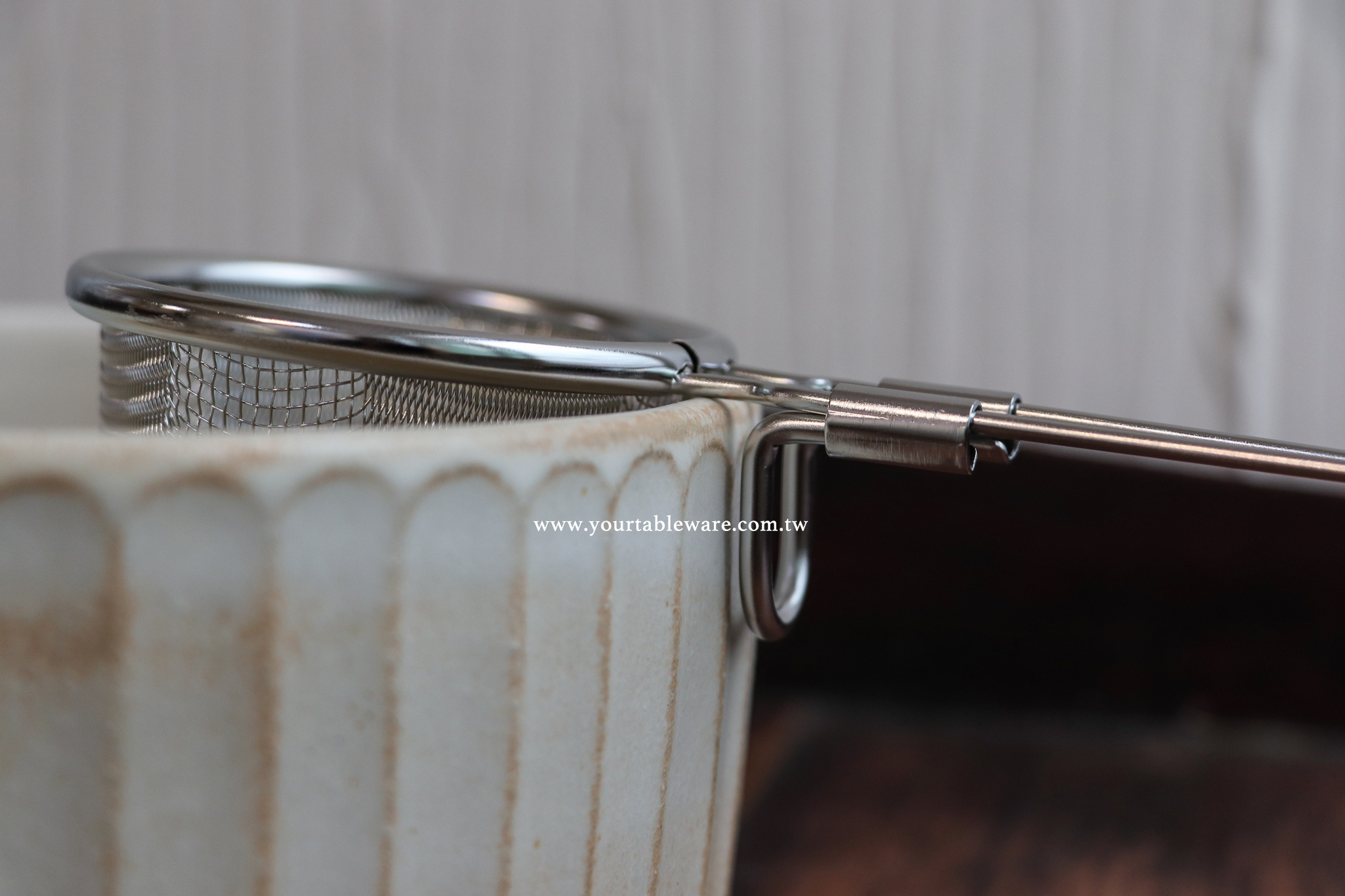 可掛在鍋邊上,有助於同時烹調兩種食物。