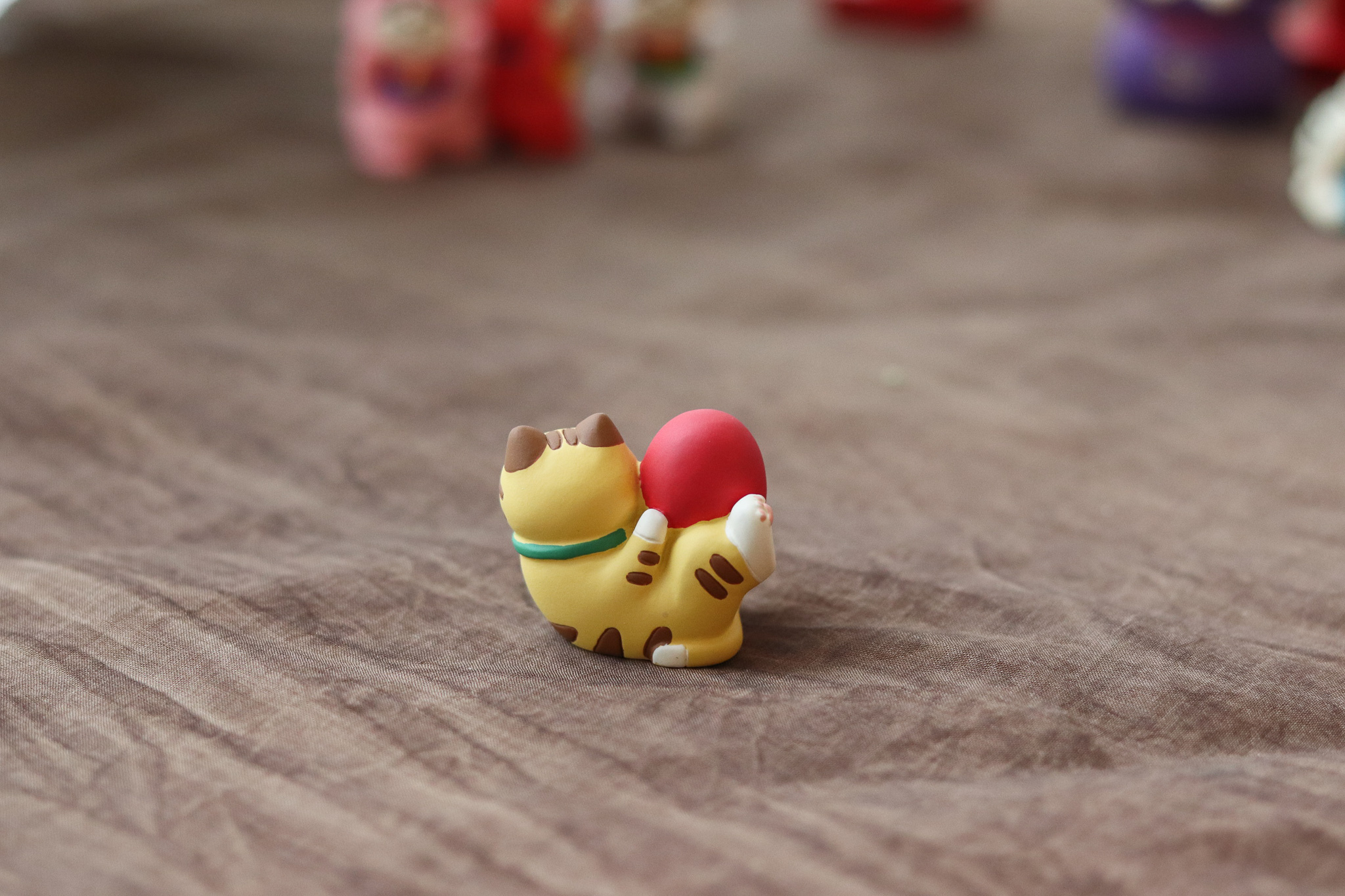 虎斑貓抱達摩-約4×2.5×H3.4cm