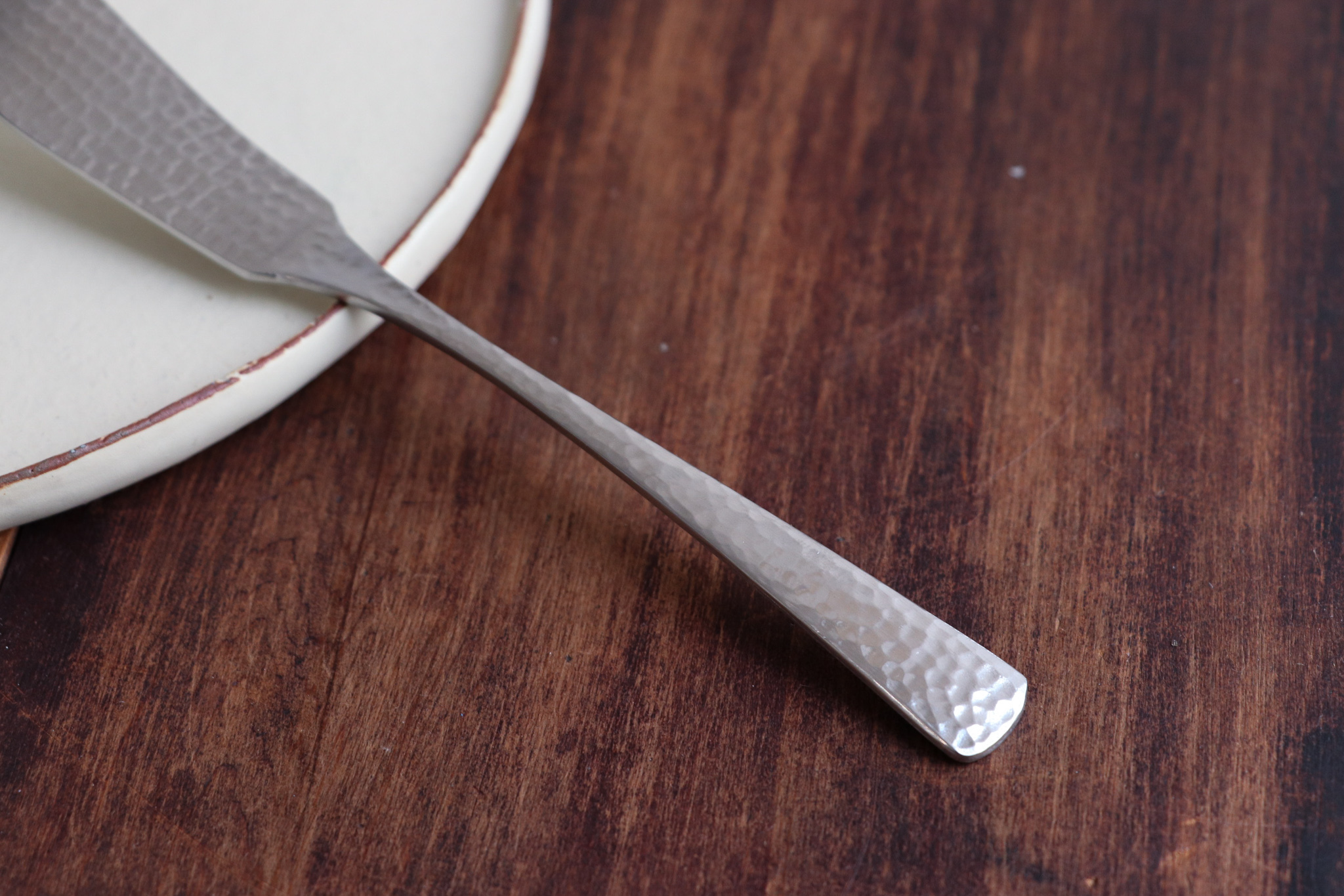 燕三条,其實是燕市與三條市的合稱,燕市是日本產出最多餐具、鍋碗瓢盆的地方,而三条市則是重金屬加工製造地,兩者之間關係緊密。凜以高品質、高硬度的不銹鋼材質,一敲一槌打造出鎚目痕跡,由於職人手作使得冷冽的金屬,變得優雅且柔和。餐具表面經過特殊加工處理,具良好的抗菌效果,用清水即可輕鬆洗去油汙,抗刮、耐磨,適合日常使用。